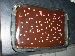 Ha lehűlt, egy kicsit összekeverjük a felhabosított margarinnal és a tészta tetejére kenjük.