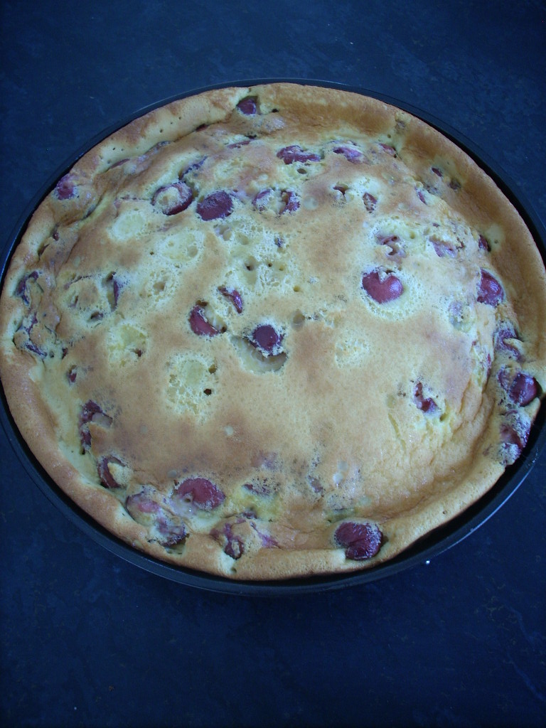 A csomómentes tésztát egyenletes rétegben a cseresznyére öntjük és a sütit 30 perc alatt megsütjük.
