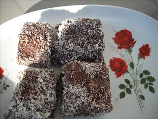 A csokimázhoz olvasszuk meg a vajat, keverjük habosra a porcukorral, adjuk hozzá a kakaót, a rumot és a tejet. Öntsük lábosba, állandó keverés mellett forraljuk fel, azután a tűzről levéve kicsit hűtsük ki. Kockázzuk a piskótát, a kockákat forgassuk előbb csokiba, majd kókuszreszelékbe. A sütikockákat sorakoztassuk tepsire, de el ne felejtsük kitunkolni a maradék csokit! Vigyázat, gyorsan párolog!