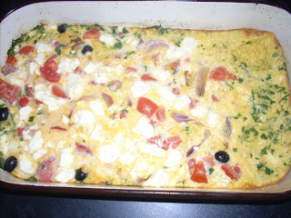 Akinek olyan serpenyője van, amit be lehet tenni a sütőbe, annak hajrá, akinek nincs (mint nekem), az tegye át a cuccot egy tepsibe, és úgy tolja be sütőbe 5-6 percre, ezalatt a tojáslepény aranysárgára sül és kissé megemelkedik.