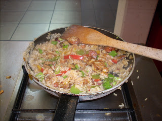 Természetesen nemcsak főztünk, ettünk is (bár én már a májjal jóllaktam, ezért a továbbiakban csak csipegettem). Nekem a legjobban a jambalaya jött be, de természetesen az összes többi étel is fenséges volt.