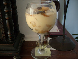 A meló nagyobb részével megvagyunk, már csak rétegezgetni kell: pohár (vagy bögre, vagy ami szimpatikus) a kézbe, alulra két darab babapiskótát beletördelünk, arra megy egy réteg gyümisali, majd vaníliás krém, majd ismét gyümisali. Ennyi. Egy éjszakára hűtőbe tesszük, és másnap villámgyorsan elpusztítjuk. Nagyon finom!
