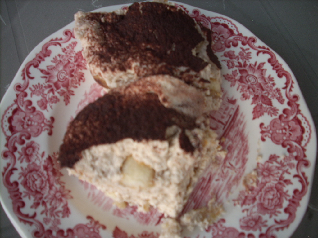 A kávét elkeverjük a likőrrel. Kerítünk egy nagy edényt vagy tálat, a babapiskótákat megforgatjuk a kávés likőrben, és egy sort lerakunk az edény aljára. Rátesszük a krém felét, majd újabb babapiskóta sor következik, és erre ráhalmozzuk a maradék krémet. A tetejét megszórjuk kakaóporral és egy éjszakára hűtőbe tesszük. Másnap rávetjük magunkat az édességre, és addig esszük, amíg van belőle (tényleg nagyon fincsi, képtelenség abbahagyni, alig győzőm letornázni a hétvégi bűnözést..)