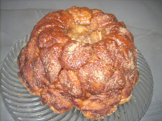 És akkor most jöhet a játék: a kis tésztadarabokat gombóccá sodorjuk a kezünkben, majd először olvasztott vajba, aztán fahéjas cukorba forgatjuk és laza csuklóval belehajítjuk a kuglófformába. Én istenien szórakoztam, amíg minden gombóc elfoglalta az őt megillető helyet a kuglófformában (nem vagyok gyerekes, áh, dehogy..). Ha maradt a végén cukor és vaj (nekem nem maradt), akkor azt összekeverjük, és a tészta tetejére öntjük. Miután kigyönyörködtük magunkat a saját magunk alkotta gombóchalomban, ismét konyharuhát kerítünk, ráterítjük, és kb. félórát kelesztjük. Aztán már csak annyi a dolgunk, hogy 180 fokra előmelegített sütőbe toljuk, és kb. 40 perc alatt készre sütjük. Előre szólok, az a 40 perc nagyon hosszú tud lenni, mert azonnal elkezd áramlani a sütőből a fahéj mennyei illata…