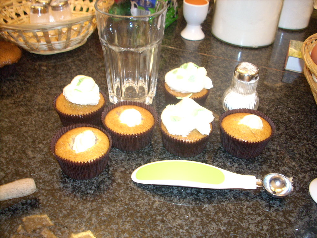 Némi ismerkedés és a szokásos világbajnok capuccino után nekiálltunk muffint sütni. Én annyira figyeltem Kopenka magyarázatára, hogy sikeresen elmértem a szódabikarbónát, vagyis ehetetlen lett a tészta, de szerencsére voltak előre elkészített muffinok, ezért ez a kis malőr otthon nem tűnt fel senkinek (most jól lebuktam, de hát ez van).