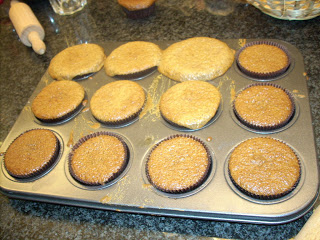 Nos, most kezdődött az izgi rész: karalábévájóval (teljesen belezúgtam a kis készségbe, be kell szereznem egy ilyet!) kivájtuk a muffinok közepét, és megtöltöttük krémmel: