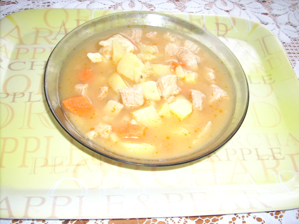Kb. negyedóra múlva hozzáadjuk a répákat, és kb. 3 dl vizet, majd lefedve tovább pároljuk. Közben, hogy ne unatkozzunk, felkockázzuk a krumplit. Ha már majdnem teljesen puha a hús, akkor mehet bele a krumpli, felöntjük vízzel, ízesítjük gulyáskrémmel és sóval. Én itt jöttem rá, hogy bizony elmértem az edényt, ebben a meglátásomban atyám is megerősített, ezért közös erővel átborítottuk a levest a legnagyobb fazékba, amit a házban találtunk: