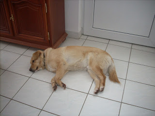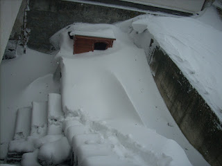 Mindenkit megnyugtatnék, hogy a kutyus nem a fenti képen látható házikóban tartózkodik, természetesen tegnap este óta belső házi őrizetet lát el nálunk: