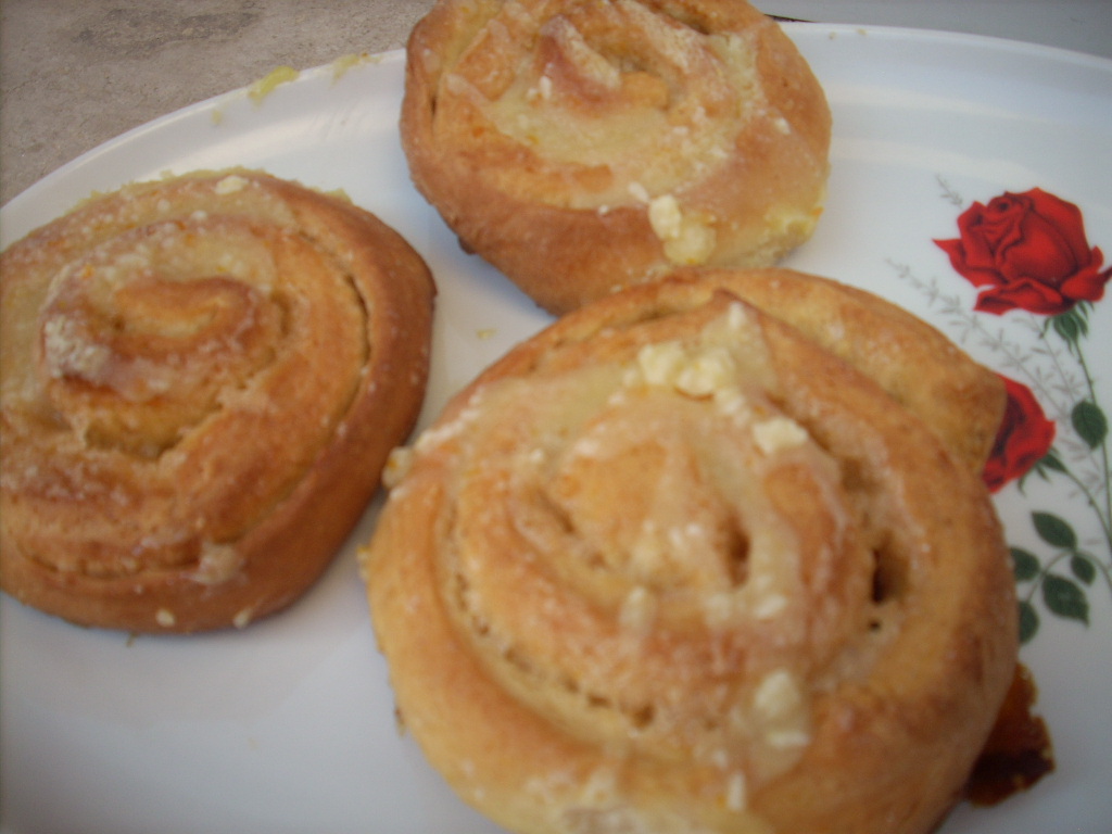 A mához a krémsajtot kikeverjük a cukorral, narancshéjjal és a narancslével. A még meleg csigákra kenjük, kicsit hagyjuk, hogy rászáradjon, majd bemeséljük magunknak, hogy a csiga magunkhoz vételével az egészségünkért teszünk, és ezzel a megnyugtató tudattal elpusztítjuk a kis narancsos finomságokat.