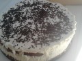 A piskótát félbe vágjuk, a krém felét beletöltjük , a másik felével pedig bevonjuk a torta tetejét. Megszórjuk tortadarával, egy éjszakára mehet a hűtőbe, és másnap gátlások nélkül behabzsoljuk.