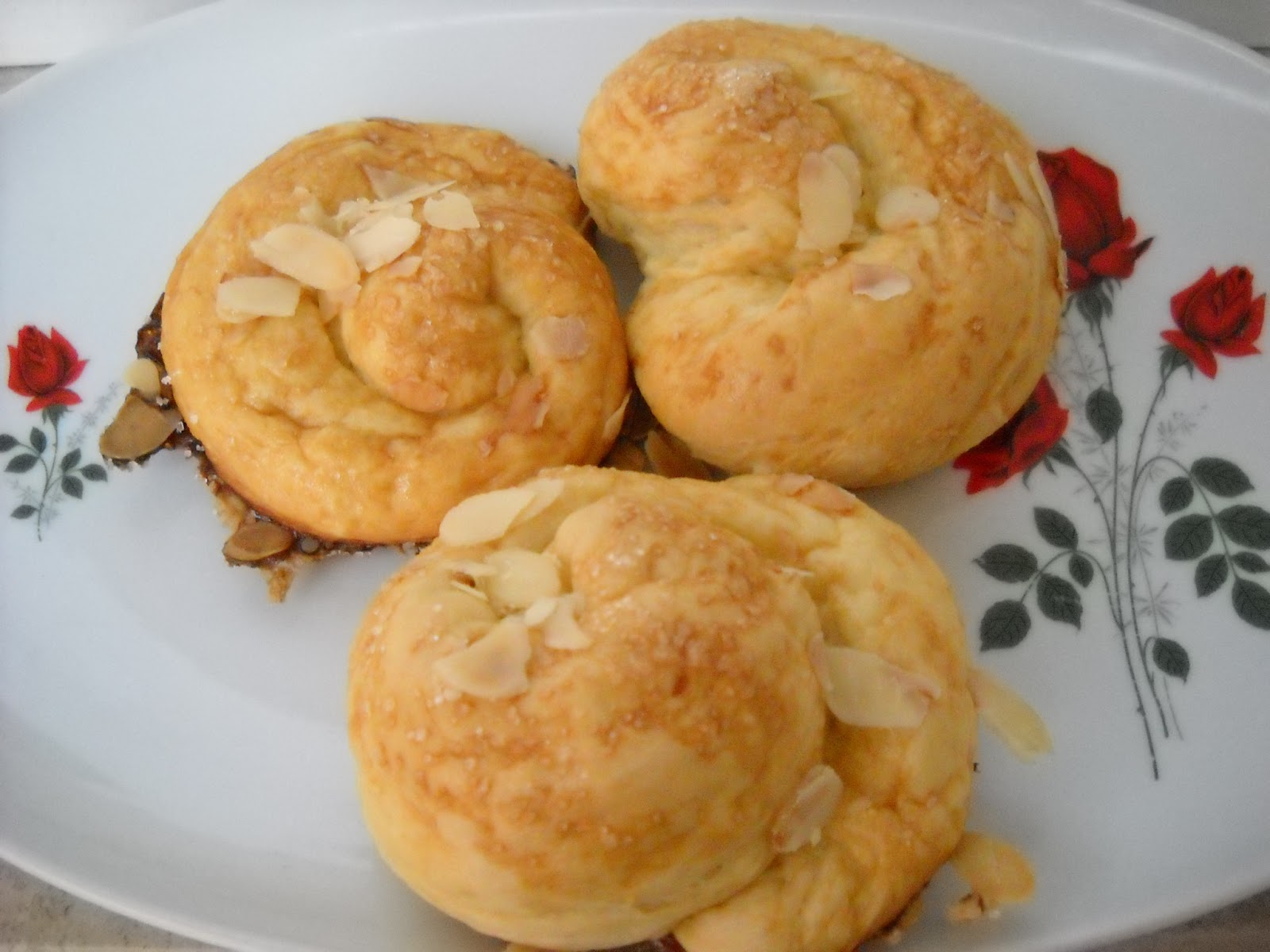 Ha megkelt, átgyúrjuk, 12 részre osztjuk a tésztát. Óvatosan, hogy ne szakadjon el a tészta, gyúrjunk kukacokat, majd ezeket tekerjük fel csigának. Sütőpapírral bélelt tepsibe sorakoztatjuk őket, letakarjuk és 45-50 percig kelesztjük. Ezután megkenjük a tetejét tojással, megszórjuk kristálycukorral és szeletelt mandulával. 180 fokra előmelegített sütőben kb. 20 perc alatt készre sütjük a briósokat.