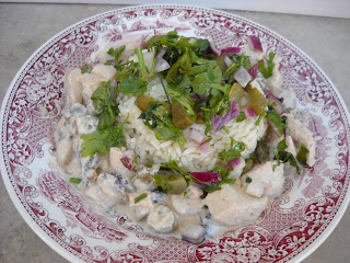 Csirke Sztroganoff módra, hagymás salsával