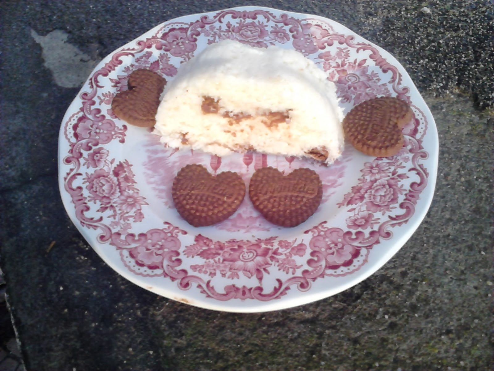 Ezután jöhet a kókuszreszelék belekeverése a tejbe, majd végső lépésként a kakaós kekszet is beletördeljük a masszába.