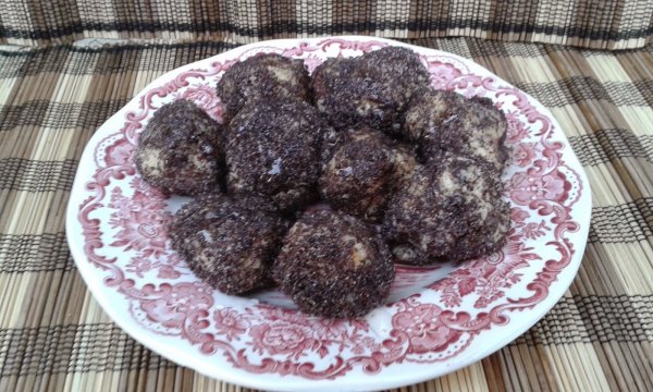 Az aszalt gyümit apróra vágjuk, hozzáadjuk a tejes köleshez, újra lefedjük, és 15 percig piheni hagyjuk. Ezután hozzáadjuk a citromhéjat, az egészet összekeverjük, majd a masszából vizes kézzel gombócokat formázunk (nekem nincs türelmem a kicsi golyóbisokhoz, ezért nagyobb darabokat készítettem), majd megforgatjuk mákban.