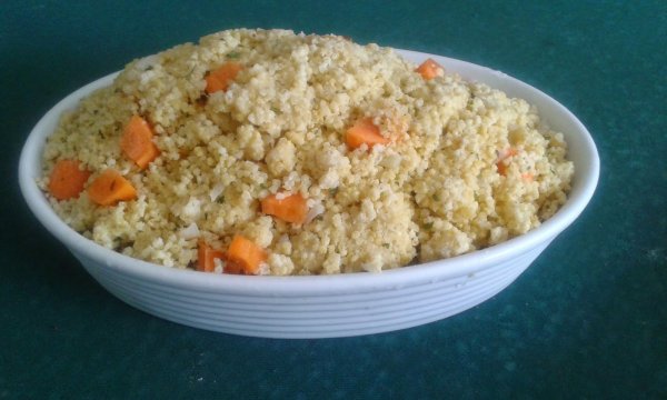 A sárgarépát apró darabokra vágjuk, a petrezselyemmel és az olívaolajjal együtt a kihűlt köleshez keverjük, sóval ízesítjük.