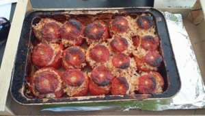 Végre felfrissült egy kicsit a levegő, franc se bírta már ezt a kánikulát, és nem volt sem zápor, sem zivatar (napok óta nem alszom, mert a kutyus nagyon fél a vihartól, amíg el nem áll, a mamának kell tartania benne a lelket, ennyit arról, hogy egy ebbel nincs annyi gond, mint egy gyerekkel, pláne, hogy őkicsiségében három ördög veszett el, de mindezzel együtt úgy imádom, ahogy van). Jöhetett végre egy kis gasztrokaland itthon, ezúttal csak kuktáskodtam, a receptek apukám barátnőjétől származnak, és mivel nekünk nagyon ízlett a végeredmény, felvettük a családi kedvencek sorába ezt a nem hétköznapi kombót, az olaszos töltött paradicsom és a sörtésztában sült csirke mesésen finom, nem gondolom, hogy hosszú életű lesz az a nem kis adag, ami készült belőle…