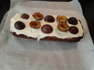 És még mindig nem vagyunk készen, de már nem sok van hátra. Egy kisebb tálban összekeverjük a mascarponét a porcukorral, az elegyet elsimítjuk a süti tetején. Néhány szem szilvát kimagozunk és kedvünk szerint díszítjük a krémet. Szeletel, habzsol. Isteni finom nasiság!