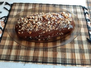 Ezután egy kis szabadprogram következik, amíg kihűl a piskóta, aztán elkészítjük a csokimázat a tetejére. A tortabevonót pici olajjal gőz fölött megolvasztjuk, egyenletesen eloszlatjuk a sütin, megszórjuk a tetejét durvára vágott dióval. Megcsodáljuk a művünket, aztán legalább egy-két órára betoljuk a hűtőbe, hogy összeérjenek az ízek (az önuralom nagy erény, csak én nem gyakorlom, úgyhogy azonnal teszteltem a minőséget és csak utána tüntettem el a szemem elől őfinomságát). Szeleteljük, habzsoljuk. Egyszerű, de nagyszerű sütemény.